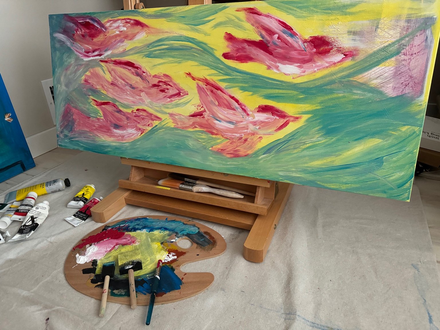This piece began during corporate worship months ago, painted in the thick of spiritual resistance. The atmosphere felt heavy and wrong — I discerned the presence of Jezebel and almost stopped, but the Holy Spirit said, “Press on.”